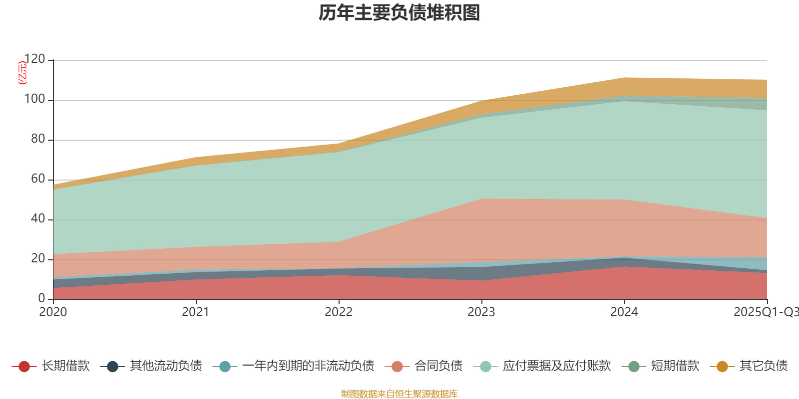 负债重大变化方面,截至2025年三季度末,公司合同负债较上年末减少30.54%,占公司总资产比重下降5.51个百分点;一年内到期的非流动负债较上年末增加831.87%,占公司总资产比重上升3.5个百分点;应付票据及应付账款较上年末增加9.58%,占公司总资产比重上升2.63个百分点;长期借款较上年末减少19.99%,占公司总资产比重下降2.11个百分点。