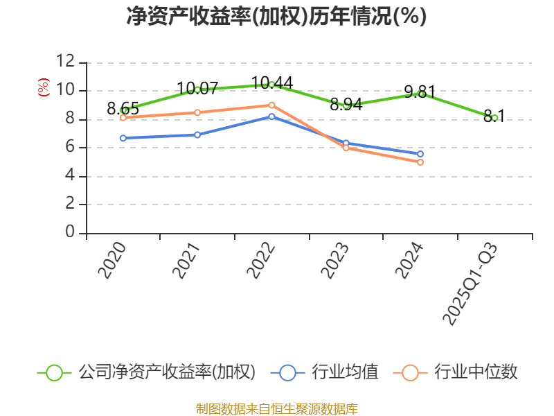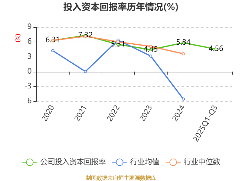 盈利能力方面, 2025年前三季度公司加权平均净资产收益率为8.1%,同比上升0.44个百分点。公司2025年前三季度投入资本回报率为4.56%,较上年同期下降0.16个百分点。