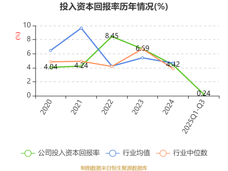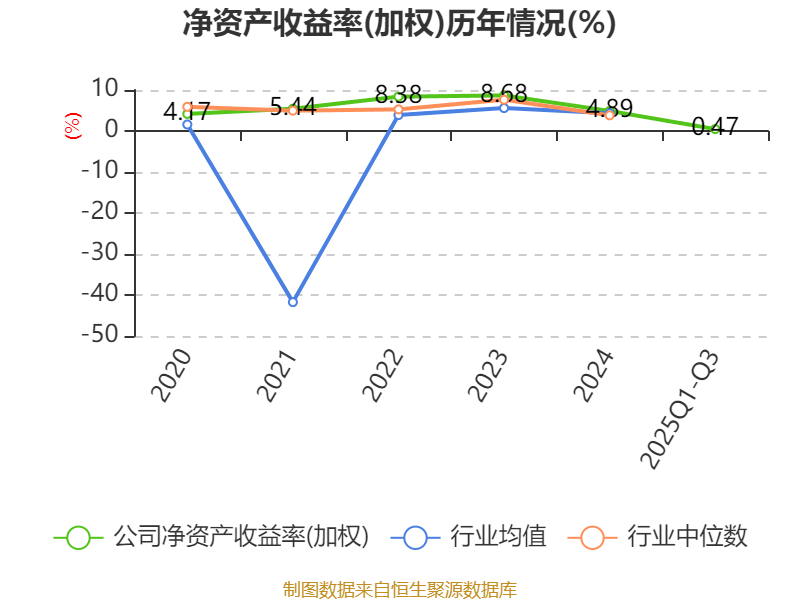 盈利能力方面, 2025年前三季度公司加权平均净资产收益率为0.47%,同比下降0.98个百分点。公司2025年前三季度投入资本回报率为0.24%,较上年同期下降0.92个百分点。