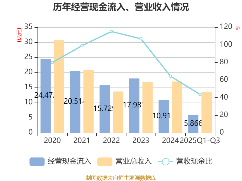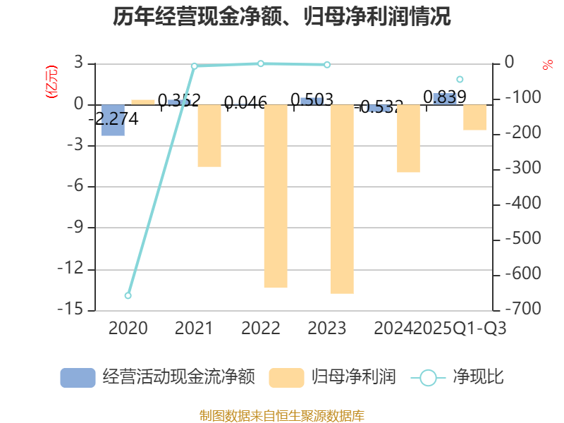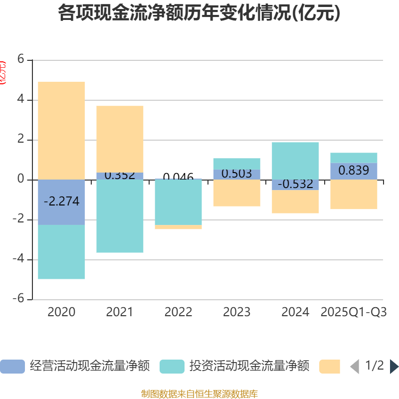 2025年前三季度,公司经营活动现金流净额为8386.06万元,同比增长281.38%;筹资活动现金流净额-1.48亿元,同比增加1444.62万元;投资活动现金流净额5036.15万元,上年同期为1.38亿元。