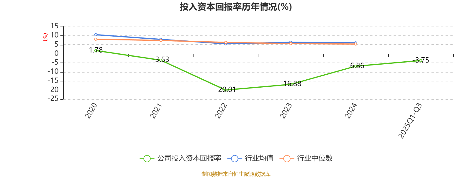 公司2025年前三季度投入资本回报率为-3.75%,较上年同期上升0.76个百分点。