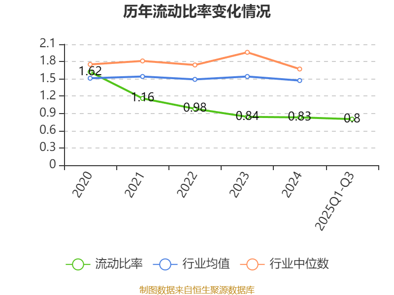 2025年前三季度,公司流动比率为0.8,速动比率为0.72。