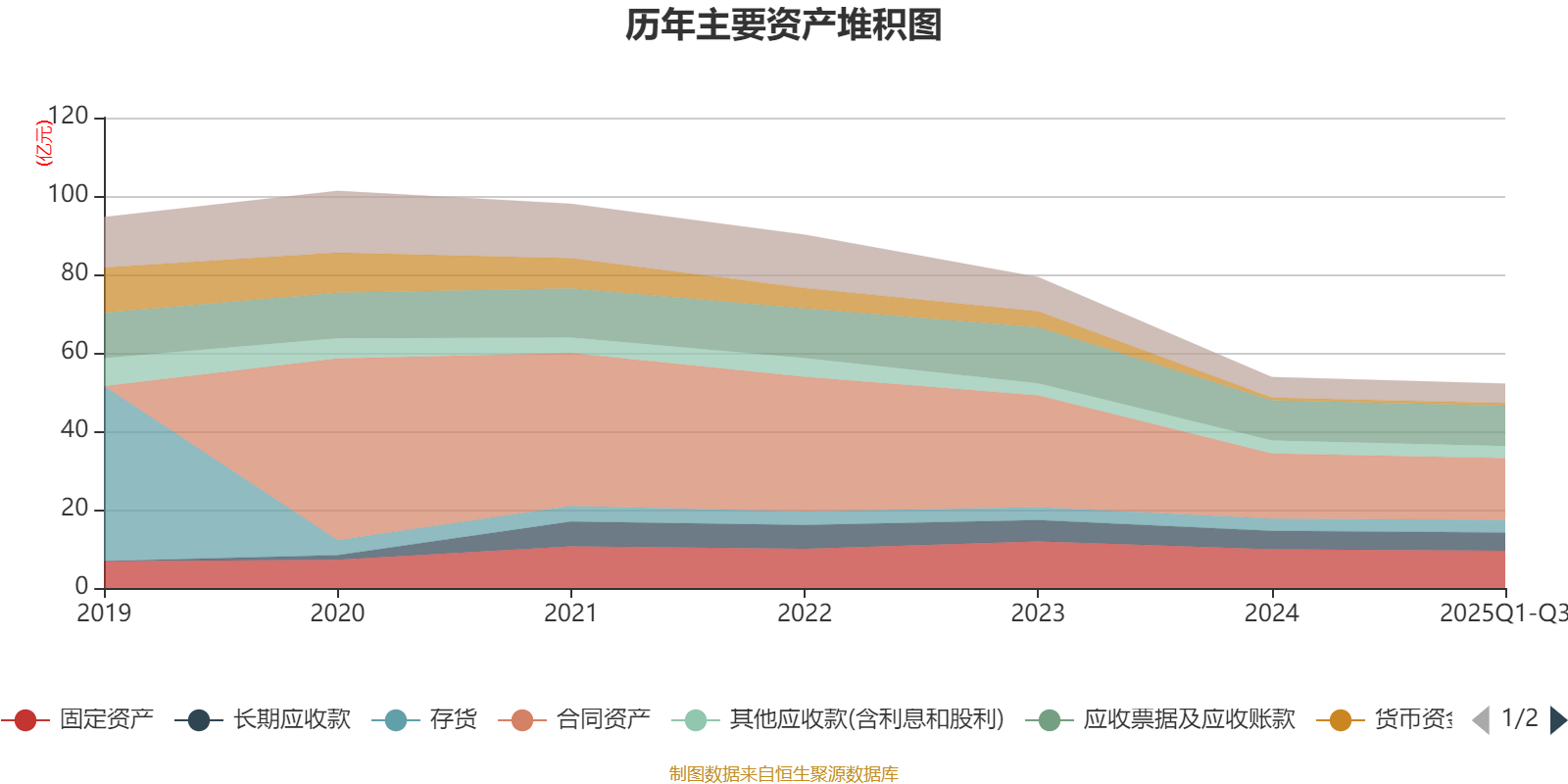 资产重大变化方面,截至2025年三季度末,公司应收票据及应收账款较上年末增加1.27%,占公司总资产比重上升0.86个百分点;合同资产较上年末减少5.19%,占公司总资产比重下降0.66个百分点;存货较上年末增加3.57%,占公司总资产比重上升0.4个百分点;其他应收款(含利息和股利)较上年末减少8.66%,占公司总资产比重下降0.35个百分点。