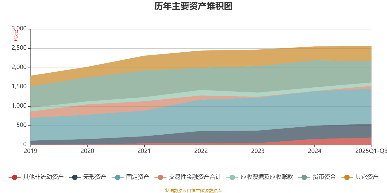 资产重大变化方面,截至2025年三季度末,公司货币资金较上年末减少21.26%,占公司总资产比重下降5.92个百分点;交易性金融资产合计较上年末增加1332.46%,占公司总资产比重上升2.66个百分点;其他非流动资产较上年末增加22.73%,占公司总资产比重上升1.32个百分点;其他流动资产较上年末增加128.84%,占公司总资产比重上升0.72个百分点。