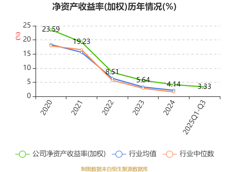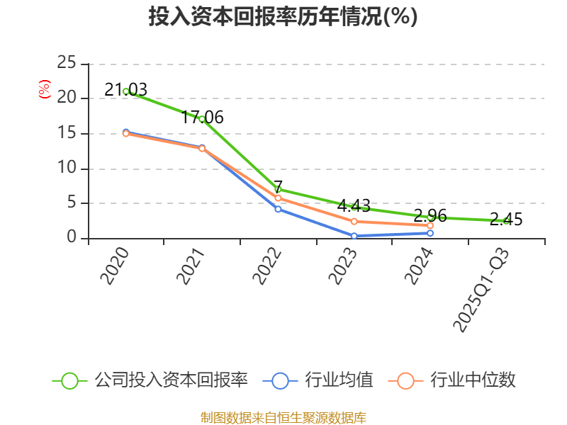 盈利能力方面, 2025年前三季度公司加权平均净资产收益率为3.33%,同比上升0.53个百分点。公司2025年前三季度投入资本回报率为2.45%,较上年同期上升0.46个百分点。