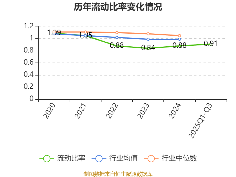 2025年前三季度,公司流动比率为0.91,速动比率为0.87。