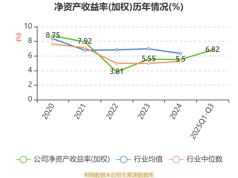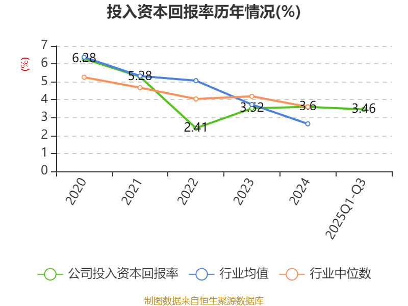 盈利能力方面, 2025年前三季度公司加权平均净资产收益率为6.82%,同比下降0.56个百分点。公司2025年前三季度投入资本回报率为3.46%,较上年同期下降0.72个百分点。