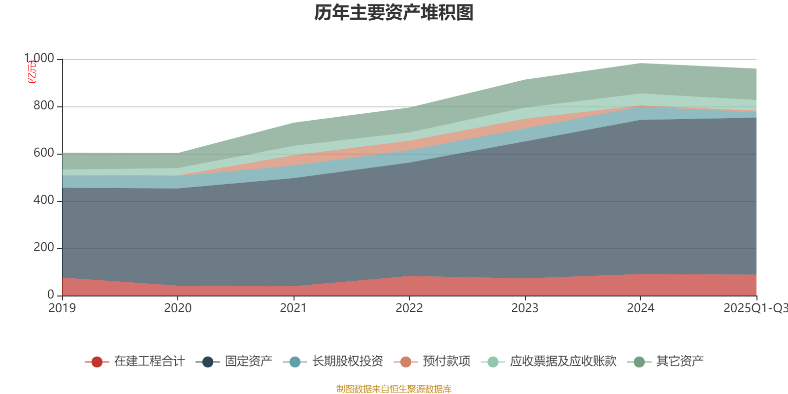 资产重大变化方面,截至2025年三季度末,公司长期股权投资较上年末减少59.57%,占公司总资产比重下降3.33个百分点;固定资产较上年末增加1.94%,占公司总资产比重上升2.93个百分点;其他非流动资产较上年末增加13.27%,占公司总资产比重上升0.53个百分点;应收票据及应收账款较上年末减少11.1%,占公司总资产比重下降0.45个百分点。