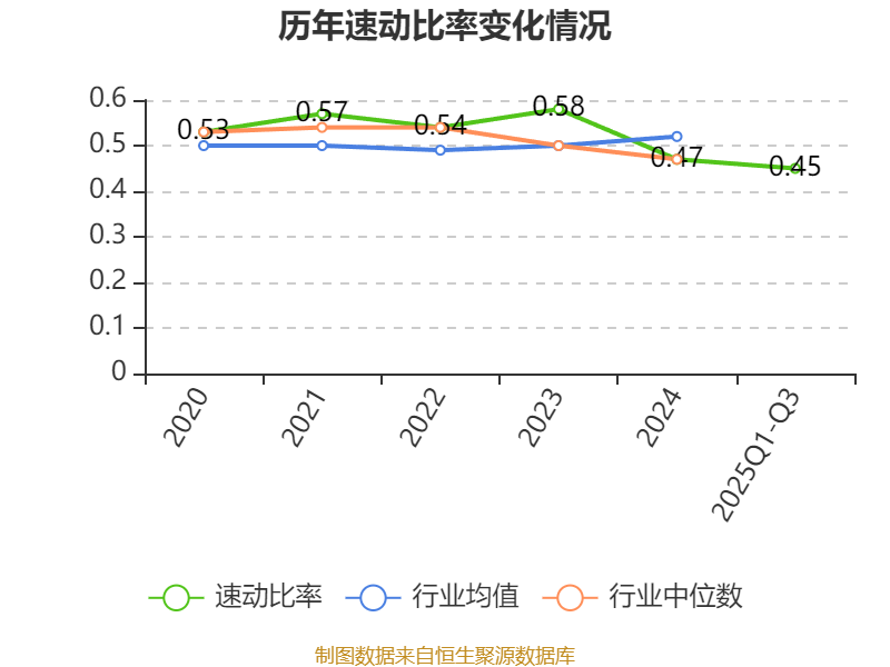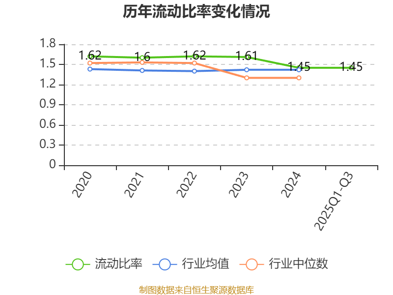 2025年前三季度,公司流动比率为1.45,速动比率为0.45。