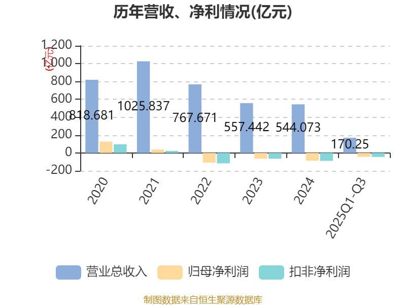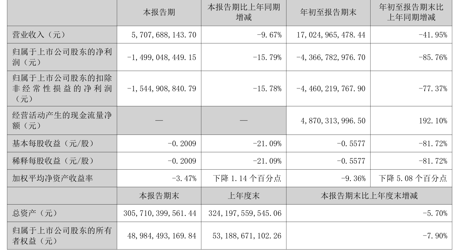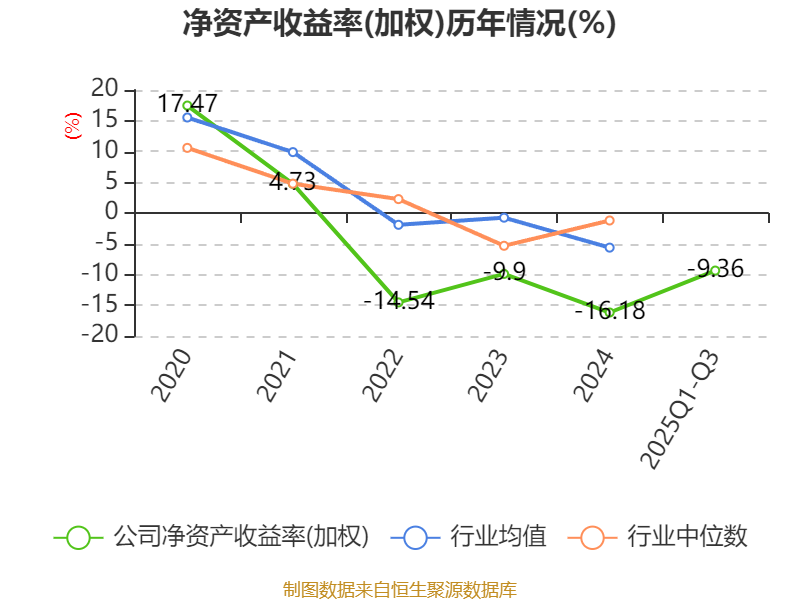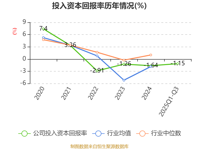 盈利能力方面, 2025年前三季度公司加权平均净资产收益率为-9.36%,同比下降5.08个百分点。公司2025年前三季度投入资本回报率为-1.15%,较上年同期下降1.2个百分点。