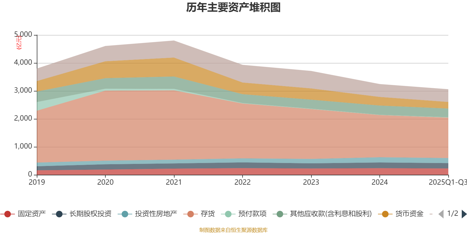 资产重大变化方面,截至2025年三季度末,公司货币资金较上年末减少23.71%,占公司总资产比重下降1.82个百分点;存货较上年末减少4.27%,占公司总资产比重上升0.71个百分点;其他流动资产较上年末增加6.32%,占公司总资产比重上升0.27个百分点;投资性房地产较上年末减少2.19%,占公司总资产比重上升0.22个百分点。