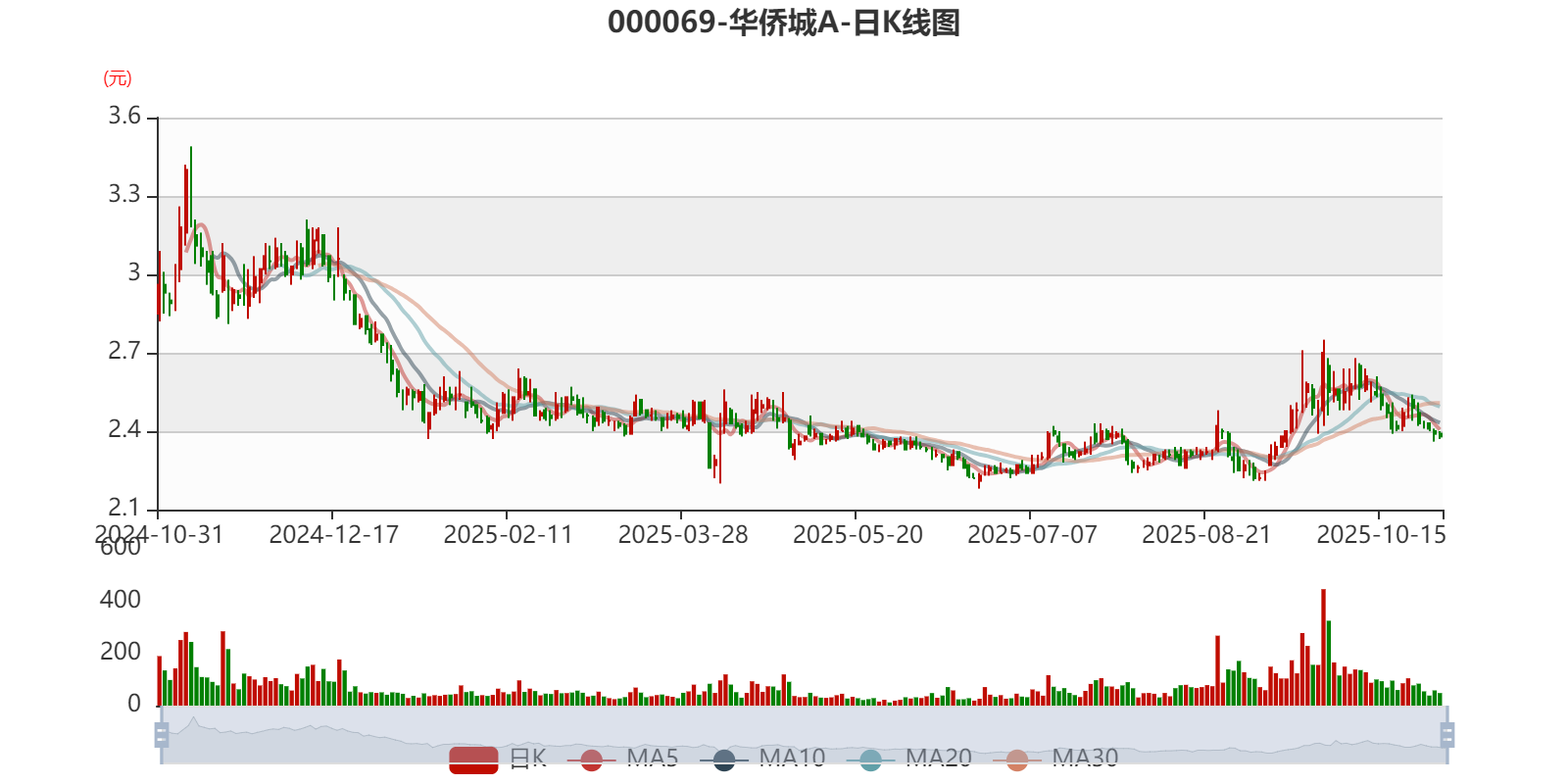 以10月30日收盘价计算,华侨城A目前市盈率(TTM)约为-1.79倍,市净率(LF)约0.39倍,市销率(TTM)约0.45倍。