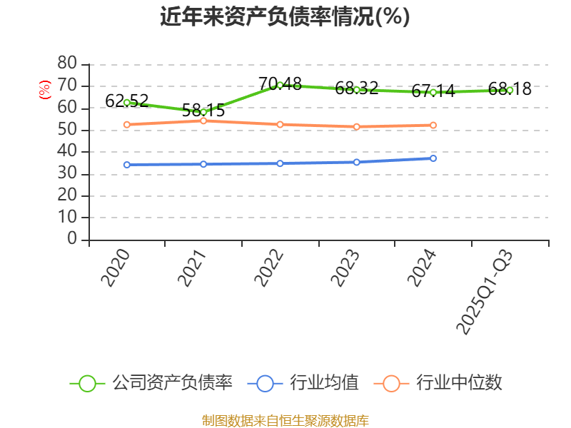 2025年前三季度,公司流动比率为0.66,速动比率为0.65。