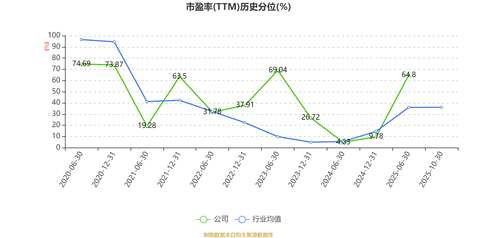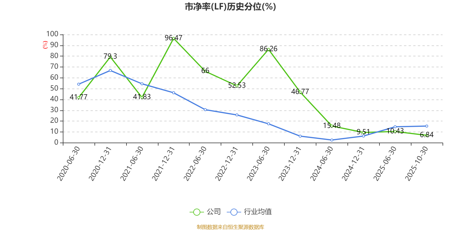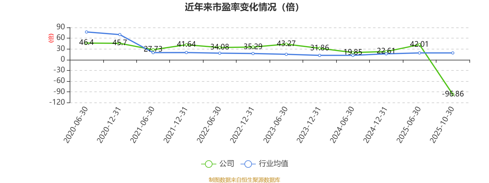 市盈率、市净率为负时,不显示当期分位数,会导致折线图中断。