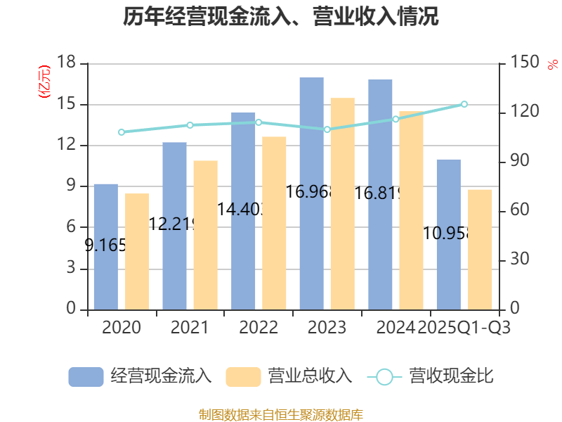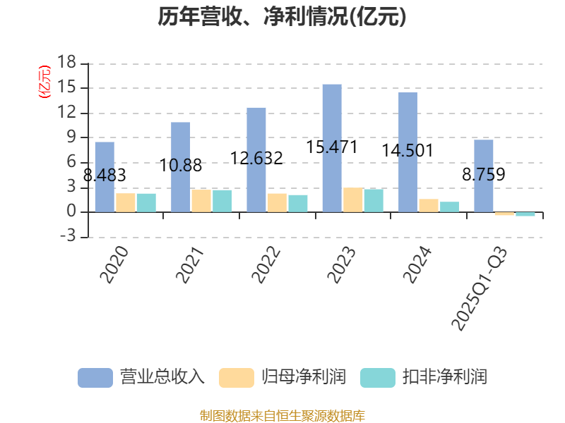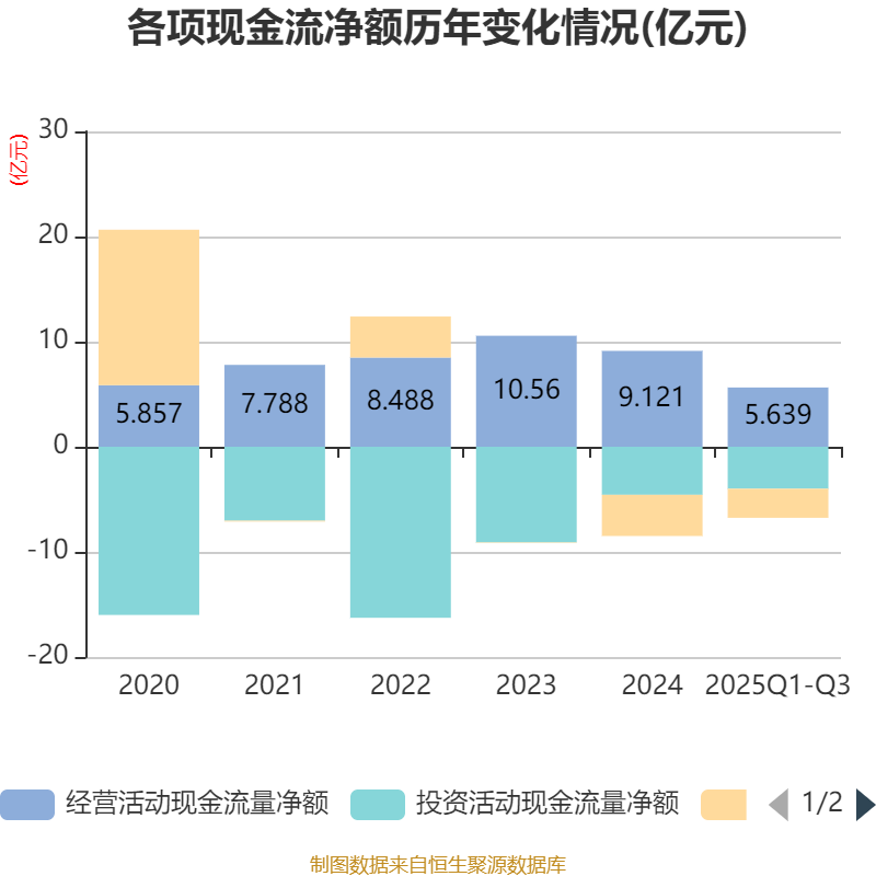 2025年前三季度,公司经营活动现金流净额为5.64亿元,同比下降22.66%;筹资活动现金流净额-2.77亿元,同比减少7747.55万元;投资活动现金流净额-3.99亿元,上年同期为-4.43亿元。