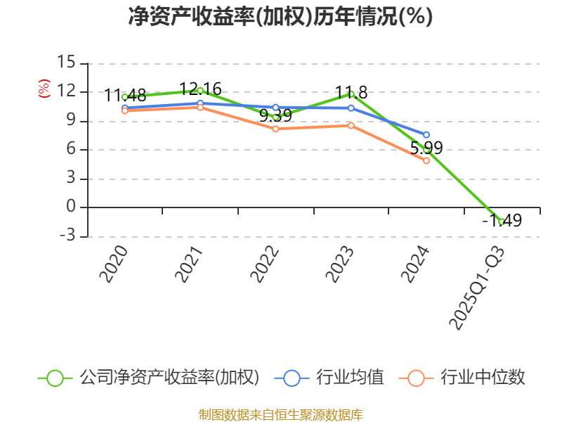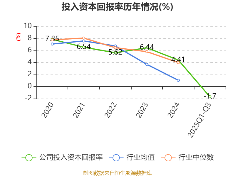 盈利能力方面, 2025年前三季度公司加权平均净资产收益率为-1.49%,同比下降7.88个百分点。公司2025年前三季度投入资本回报率为-1.7%,较上年同期下降5.65个百分点。