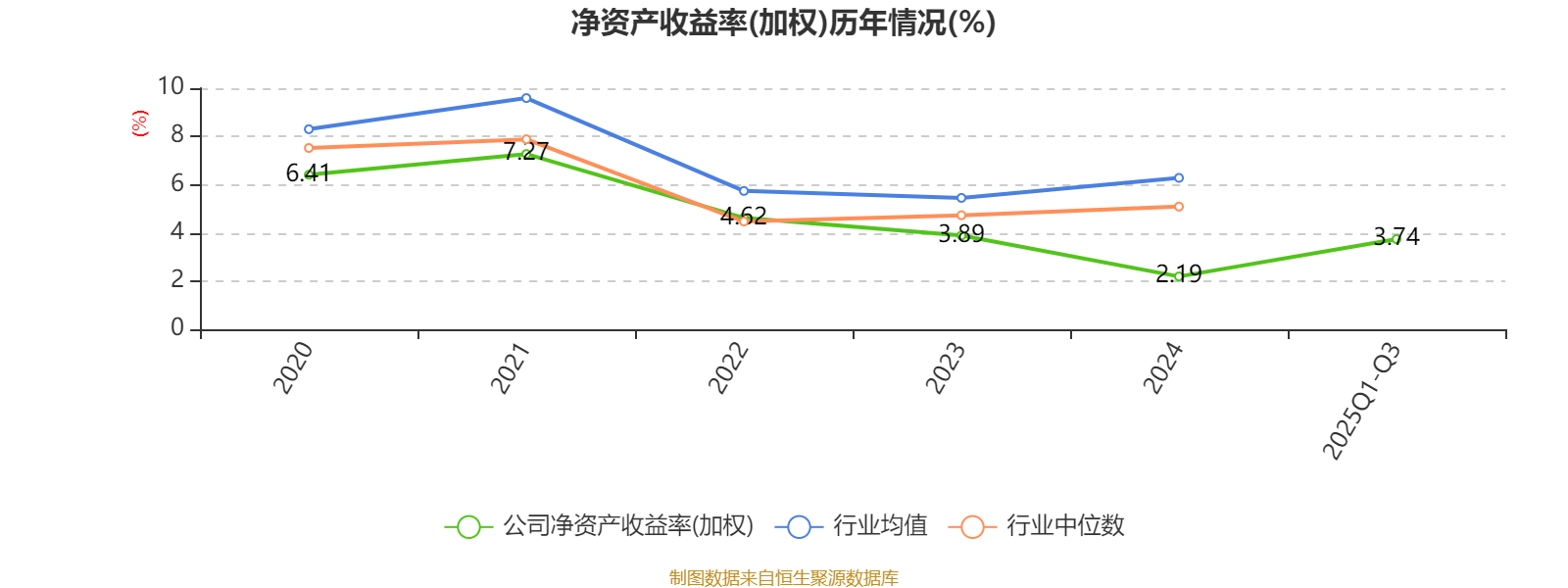 盈利能力方面, 2025年前三季度公司加权平均净资产收益率为3.74%,同比上升1.56个百分点。