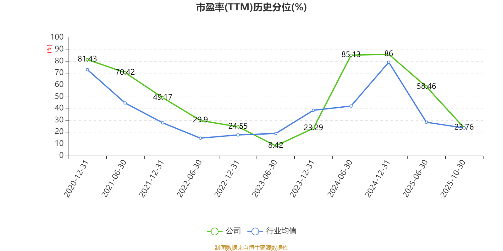 市盈率、市净率为负时,不显示当期分位数,会导致折线图中断。