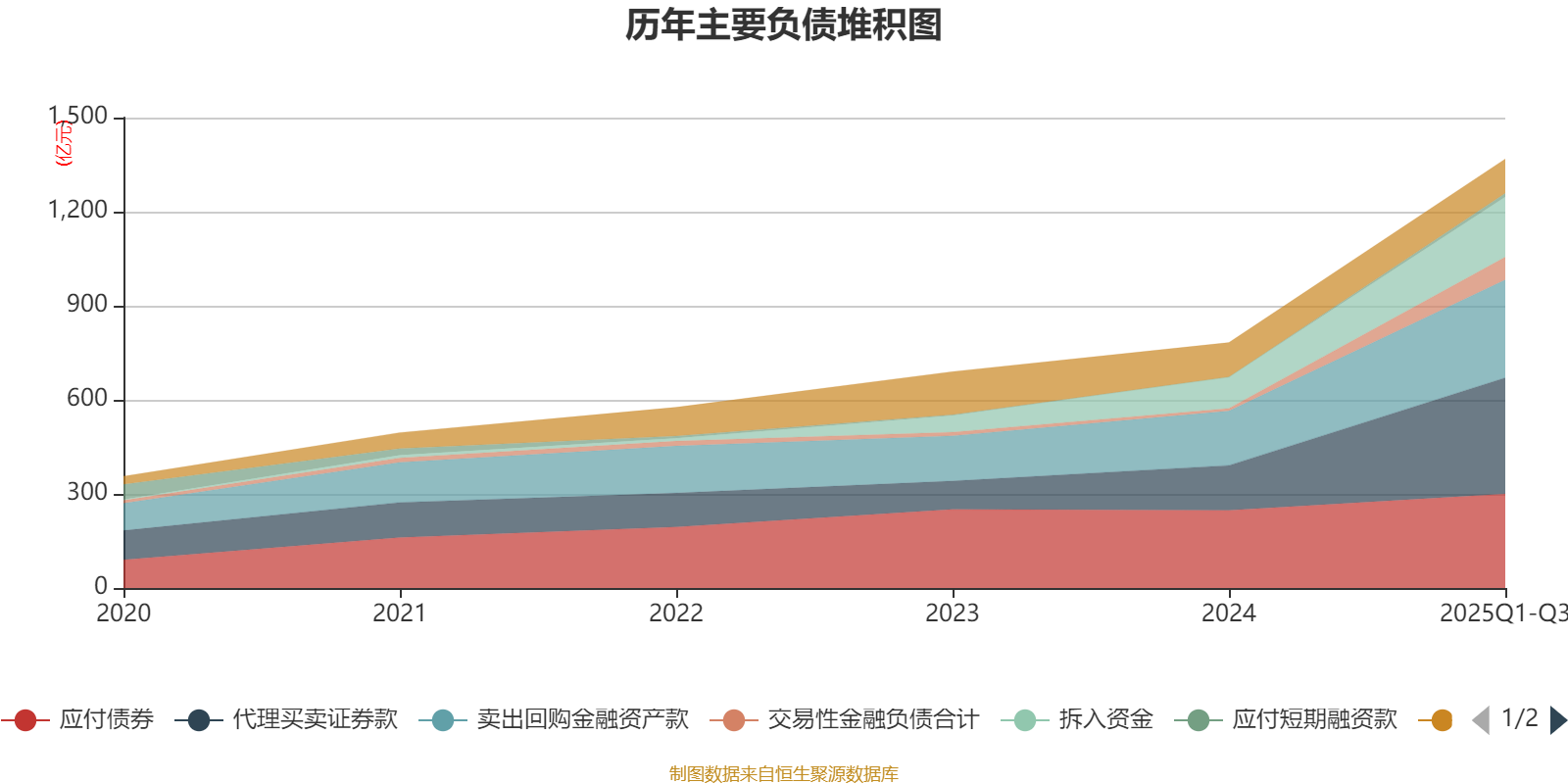 负债重大变化方面,截至2025年三季度末,公司应付债券较上年末增加21.06%,占公司总资产比重下降9.65个百分点;代理买卖证券款较上年末增加158.77%,占公司总资产比重上升4.84个百分点;交易性金融负债合计较上年末增加771.45%,占公司总资产比重上升2.98个百分点;卖出回购金融资产款较上年末增加79.99%,占公司总资产比重下降1.35个百分点。