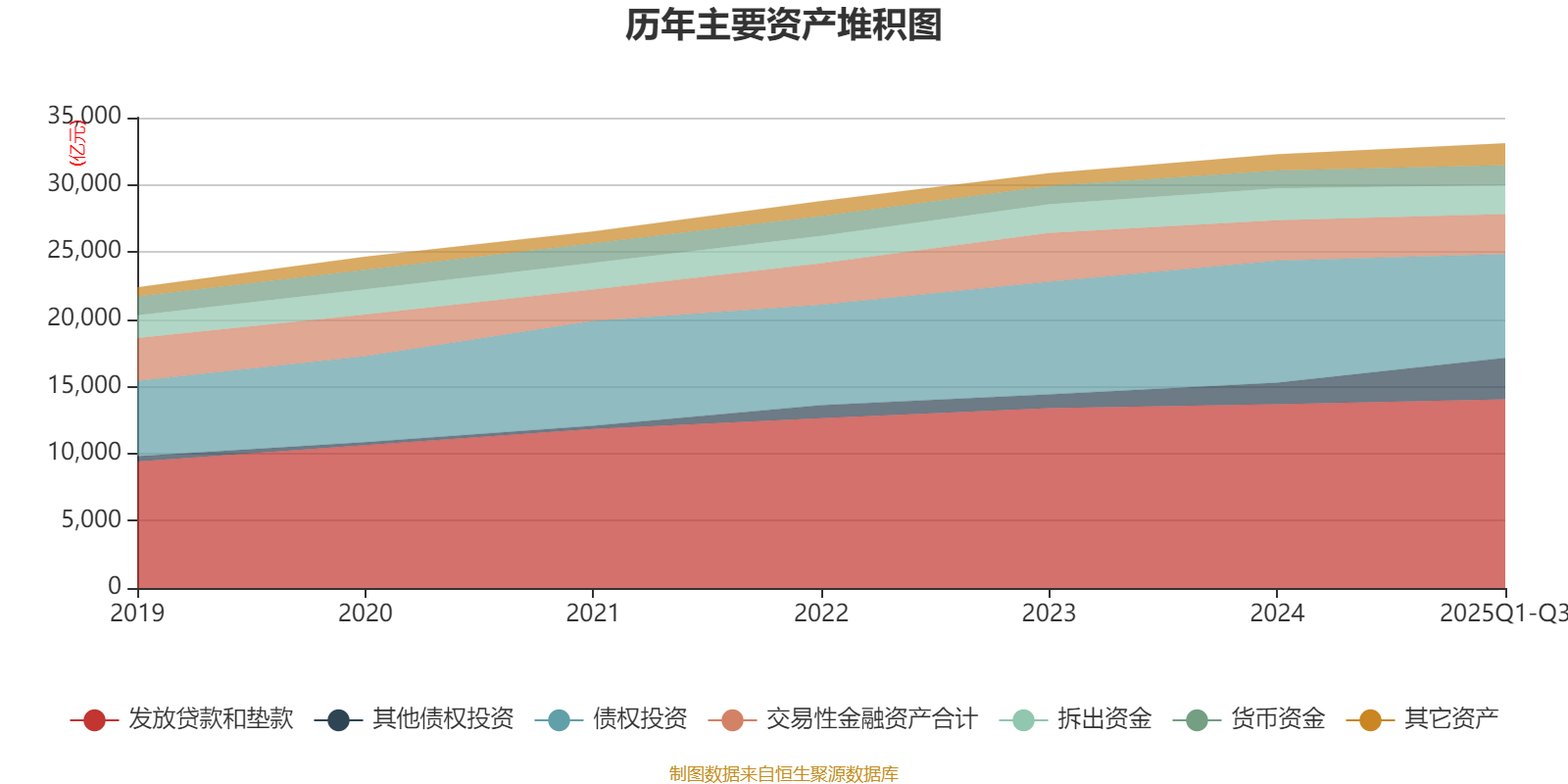 资产重大变化方面,截至2025年三季度末,公司债权投资较上年末减少15.15%,占公司总资产比重下降4.86个百分点;其他债权投资较上年末增加92.7%,占公司总资产比重上升4.36个百分点;拆出资金较上年末减少9.44%,占公司总资产比重下降0.86个百分点;存放同业款项较上年末增加113.03%,占公司总资产比重上升0.8个百分点。