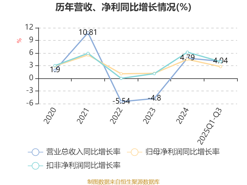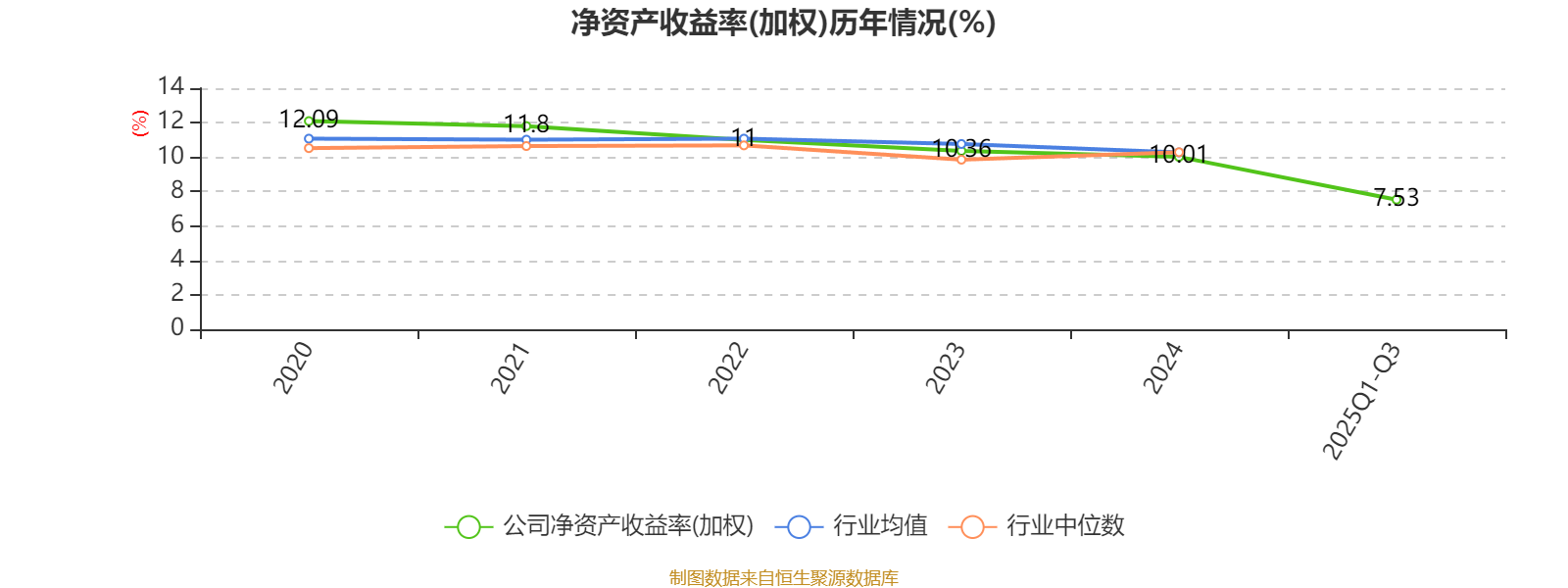 盈利能力方面, 2025年前三季度公司加权平均净资产收益率为7.53%,同比下降0.26个百分点。