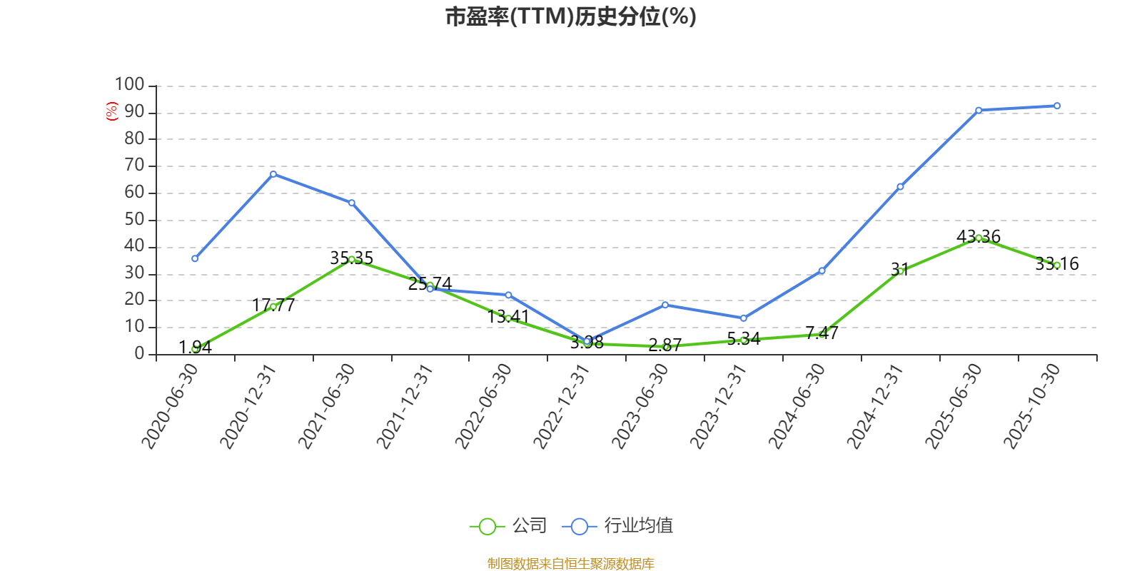 市盈率、市净率为负时,不显示当期分位数,会导致折线图中断。