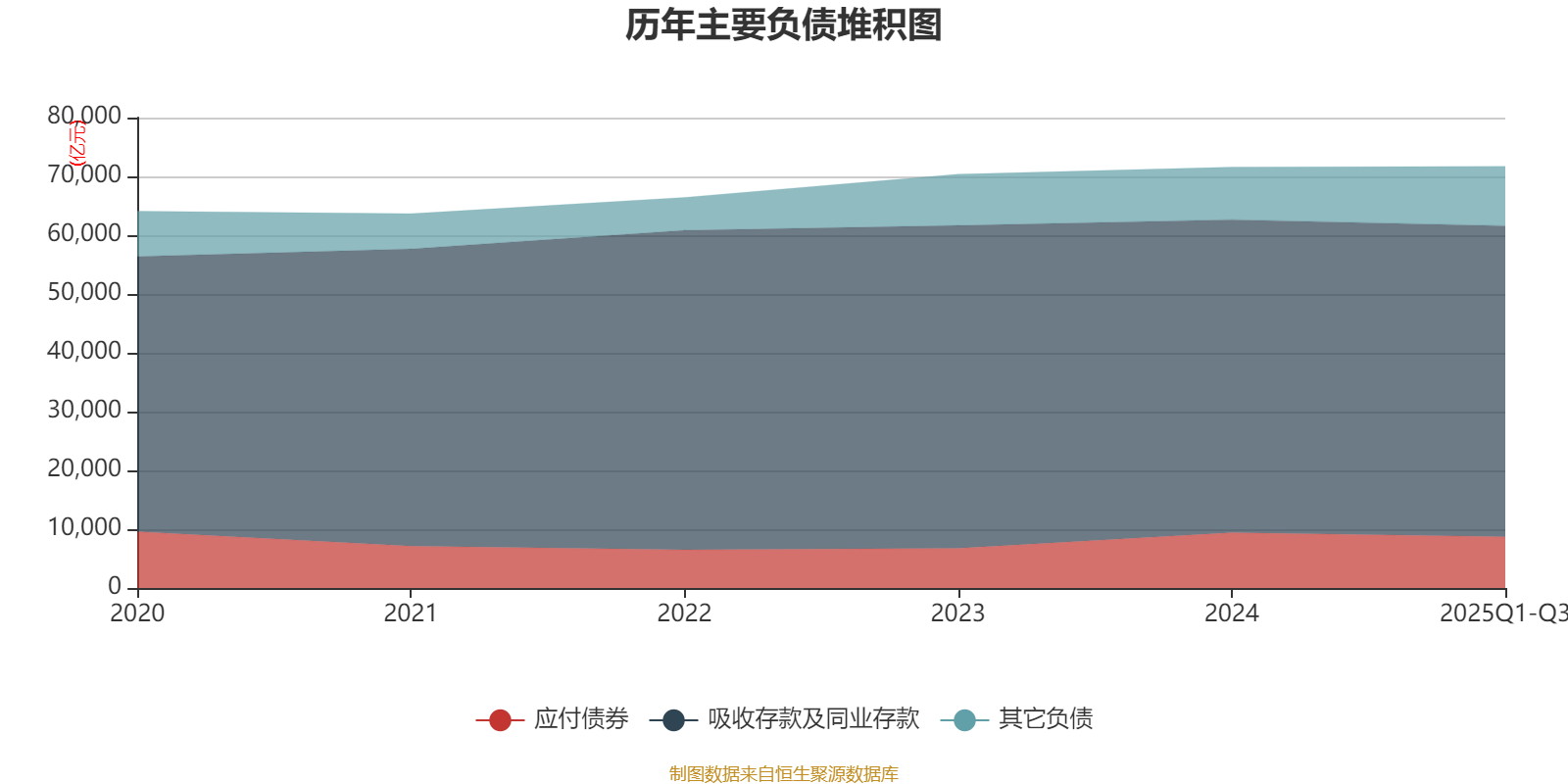 资产重大变化方面,截至2025年三季度末,公司债权投资较上年末减少4.47%,占公司总资产比重下降0.98个百分点;存放同业款项较上年末增加49%,占公司总资产比重上升0.72个百分点;发放贷款和垫款较上年末减少0.37%,占公司总资产比重下降0.62个百分点;贵金属较上年末增加107.51%,占公司总资产比重上升0.42个百分点。