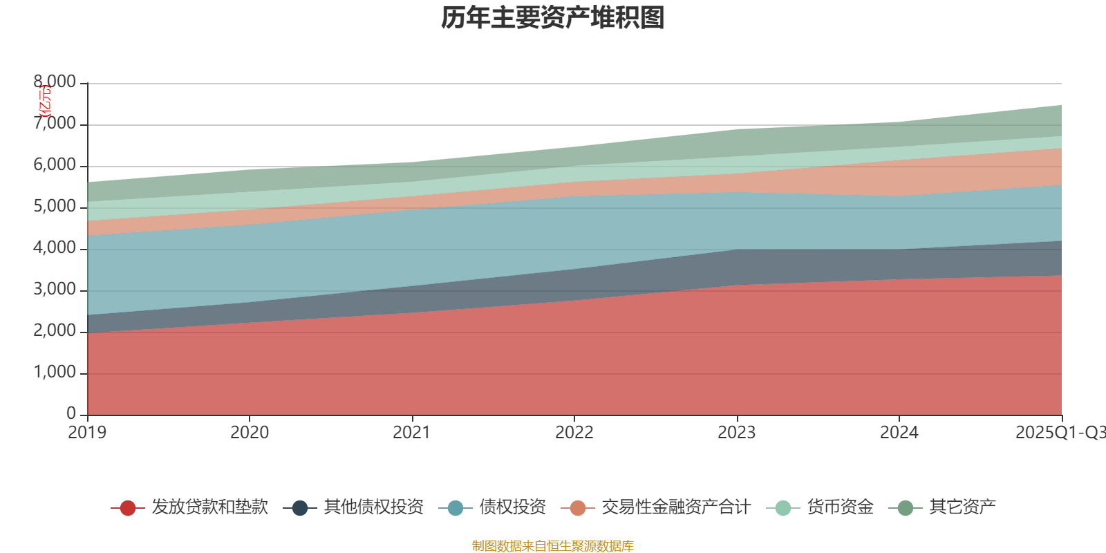 资产重大变化方面,截至2025年三季度末,公司发放贷款和垫款较上年末增加2.74%,占公司总资产比重下降1.34个百分点;买入返售金融资产较上年末增加69.72%,占公司总资产比重上升1.04个百分点;其他债权投资较上年末增加16.25%,占公司总资产比重上升1.01个百分点;货币资金较上年末减少9.59%,占公司总资产比重下降0.66个百分点。