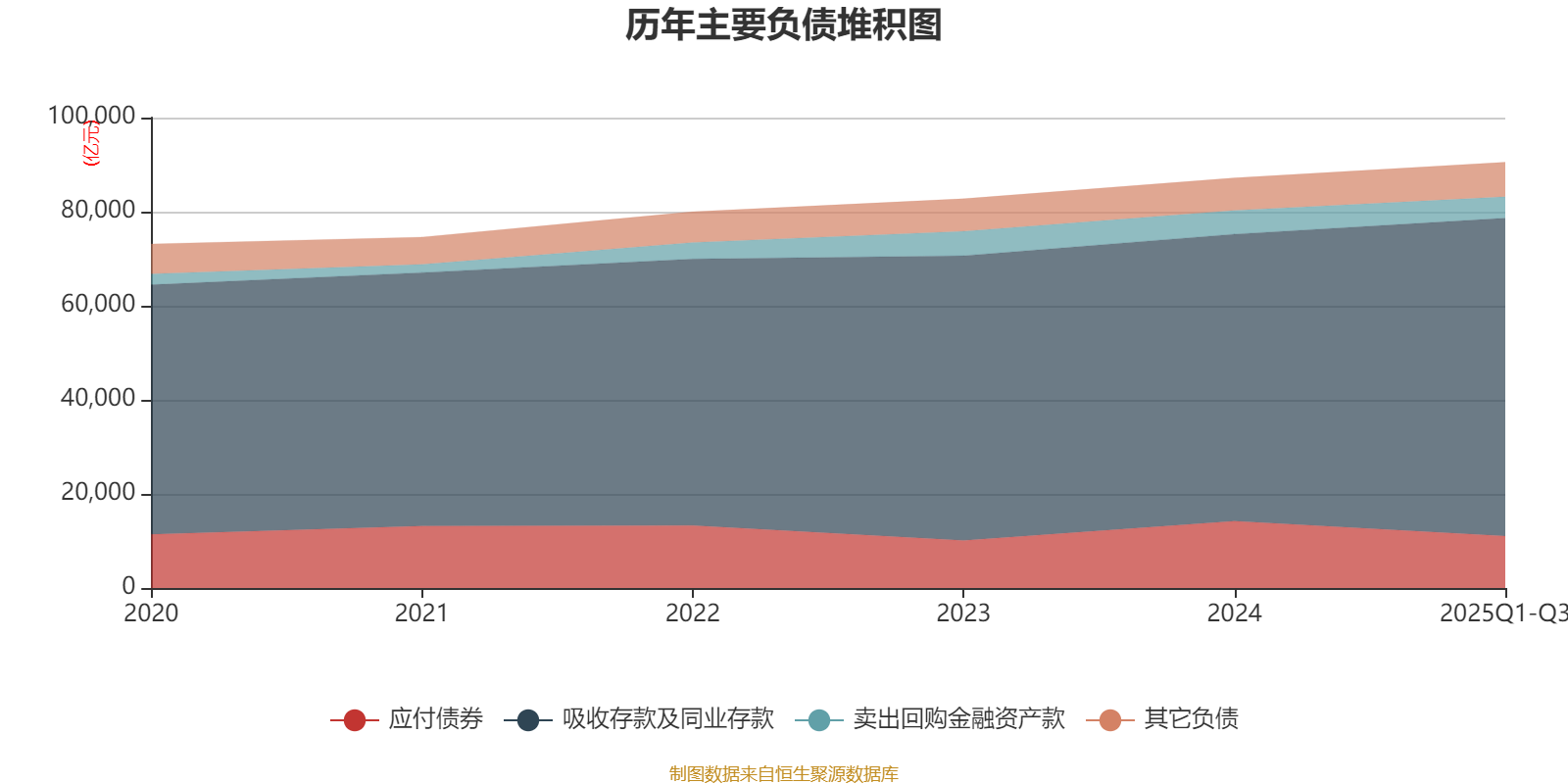 负债重大变化方面,截至2025年三季度末,公司吸收存款及同业存款较上年末增加10.74%,占公司总资产比重上升3.82个百分点;应付债券较上年末减少22.09%,占公司总资产比重下降3.82个百分点;卖出回购金融资产款较上年末减少10.5%,占公司总资产比重下降0.77个百分点;交易性金融负债合计较上年末增加117.13%,占公司总资产比重上升0.38个百分点。