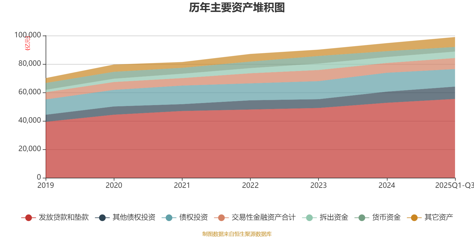 资产重大变化方面,截至2025年三季度末,公司债权投资较上年末减少6.85%,占公司总资产比重下降1.53个百分点;货币资金较上年末减少21.18%,占公司总资产比重下降1.07个百分点;贵金属较上年末增加351.21%,占公司总资产比重上升0.81个百分点;交易性金融资产合计较上年末增加12.15%,占公司总资产比重上升0.53个百分点。