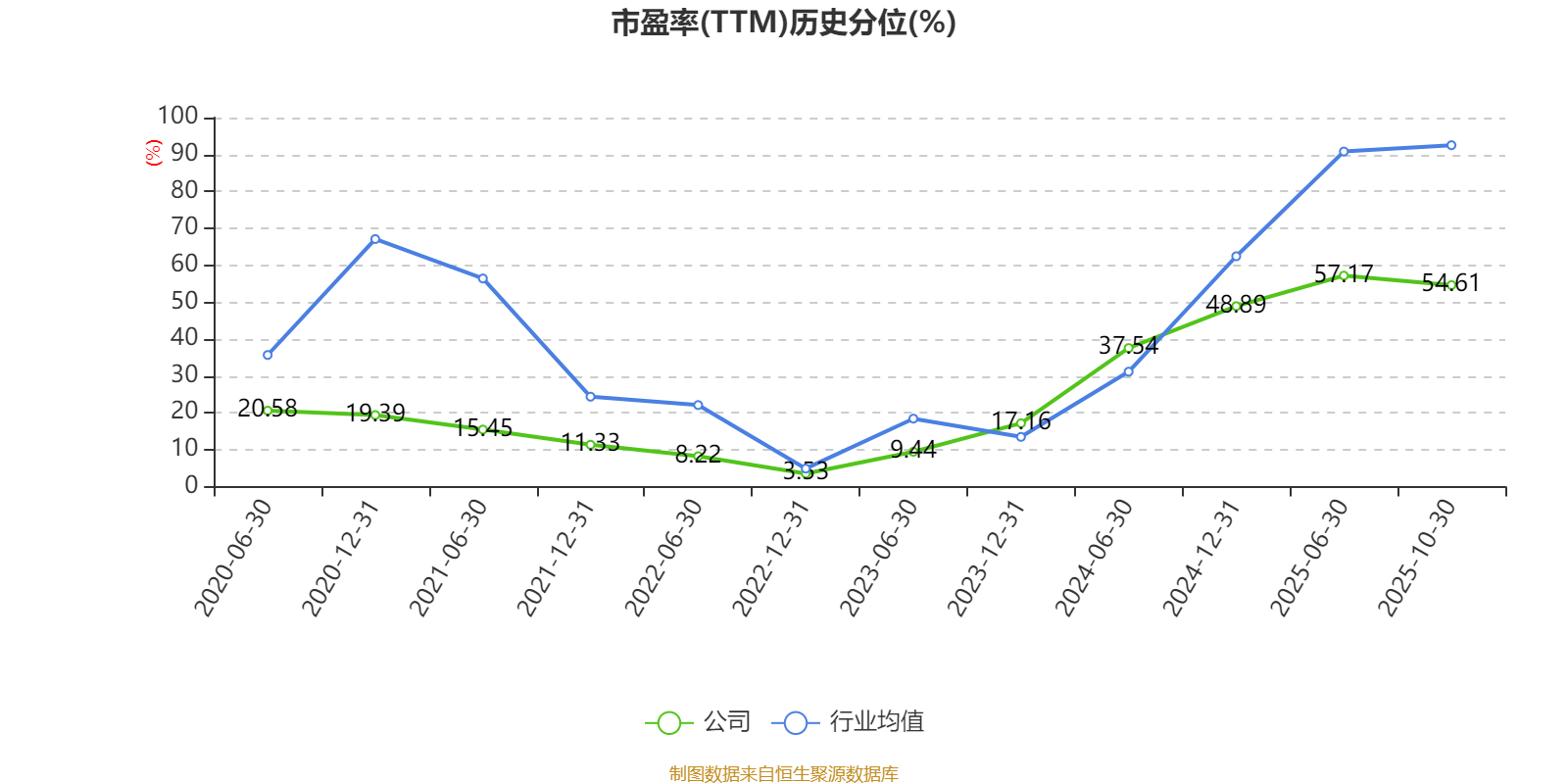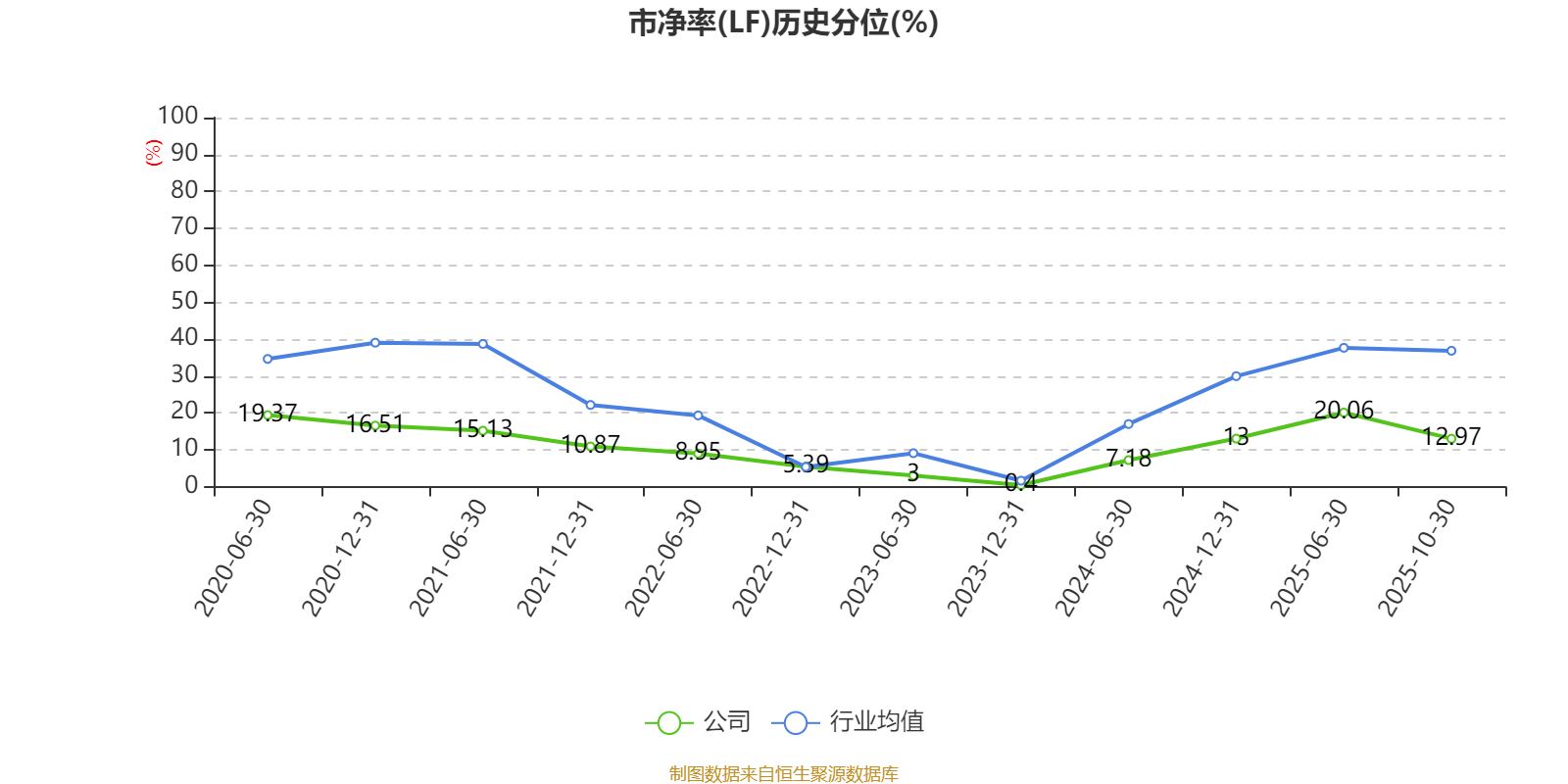 市盈率、市净率为负时,不显示当期分位数,会导致折线图中断。