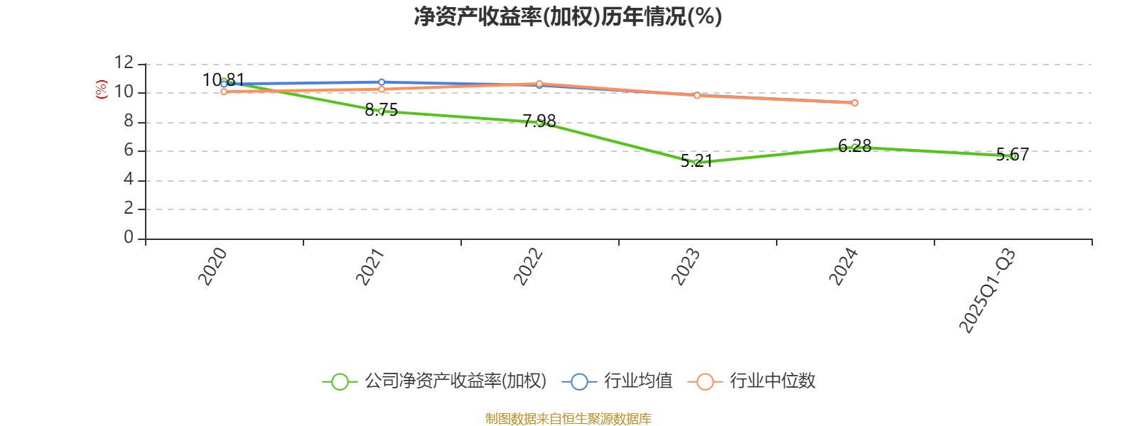 盈利能力方面, 2025年前三季度公司加权平均净资产收益率为5.67%,同比上升0.42个百分点。
