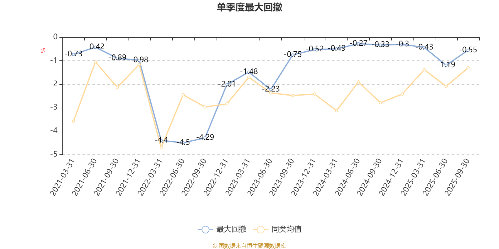 截至10月30日,基金近三年最大回撤为3.1%,同类可比基金排名63/535。单季度最大回撤出现在2022年二季度,为4.5%。