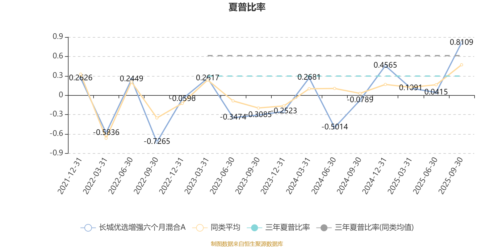截至9月30日,基金近三年夏普比率为0.2957,位于同类可比基金446/553。