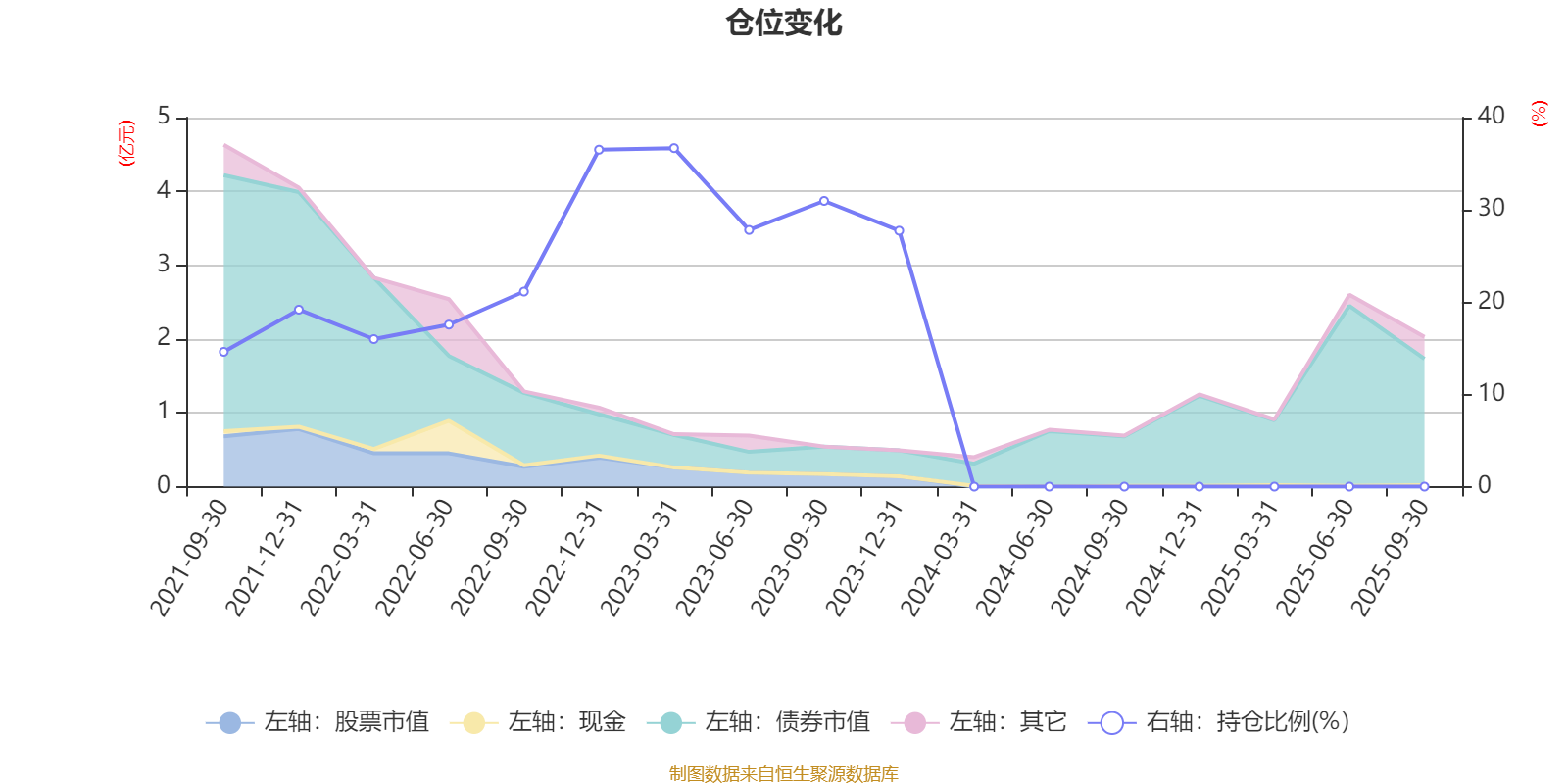据定期报告数据统计,近三年平均股票仓位为13.31%,同类平均为19.19%。2023年一季度末基金达到36.69%的最高仓位,2021年三季度末最低,为14.61%。
