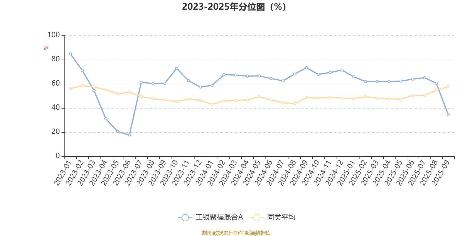 通过所选区间该基金净值增长率分位图,可以观察该基金与同类基金业绩比较情况。图为坐标原点到区间内某时点的净值增长率在同类基金中的分位数。