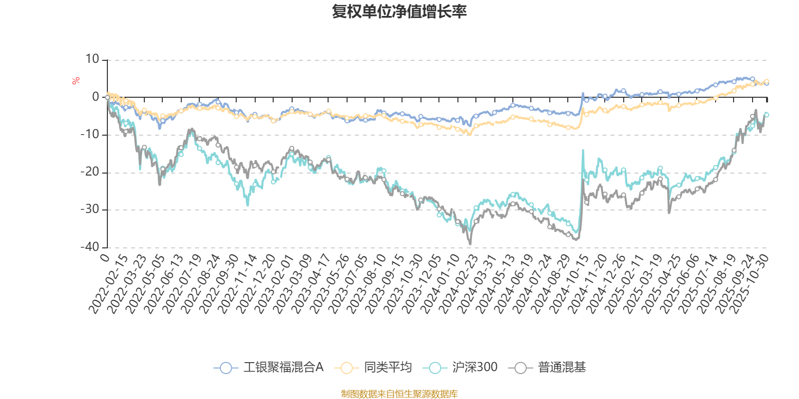 截至10月30日,工银聚福混合A近三个月复权单位净值增长率为-0.37%,位于同类可比基金612/629;近半年复权单位净值增长率为2.89%,位于同类可比基金509/629;近一年复权单位净值增长率为4.63%,位于同类可比基金501/623;近三年复权单位净值增长率为10.57%,位于同类可比基金336/557。