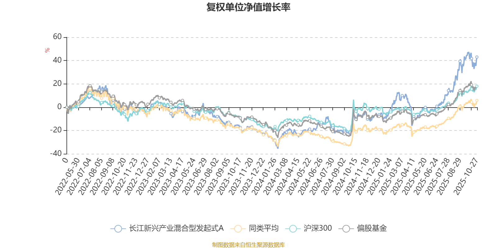 截至10月27日,长江新兴产业混合型发起式A近三个月复权单位净值增长率为29.21%,位于同类可比基金97/621;近半年复权单位净值增长率为54.15%,位于同类可比基金61/619;近一年复权单位净值增长率为53.48%,位于同类可比基金92/611;近三年复权单位净值增长率为45.21%,位于同类可比基金88/518。