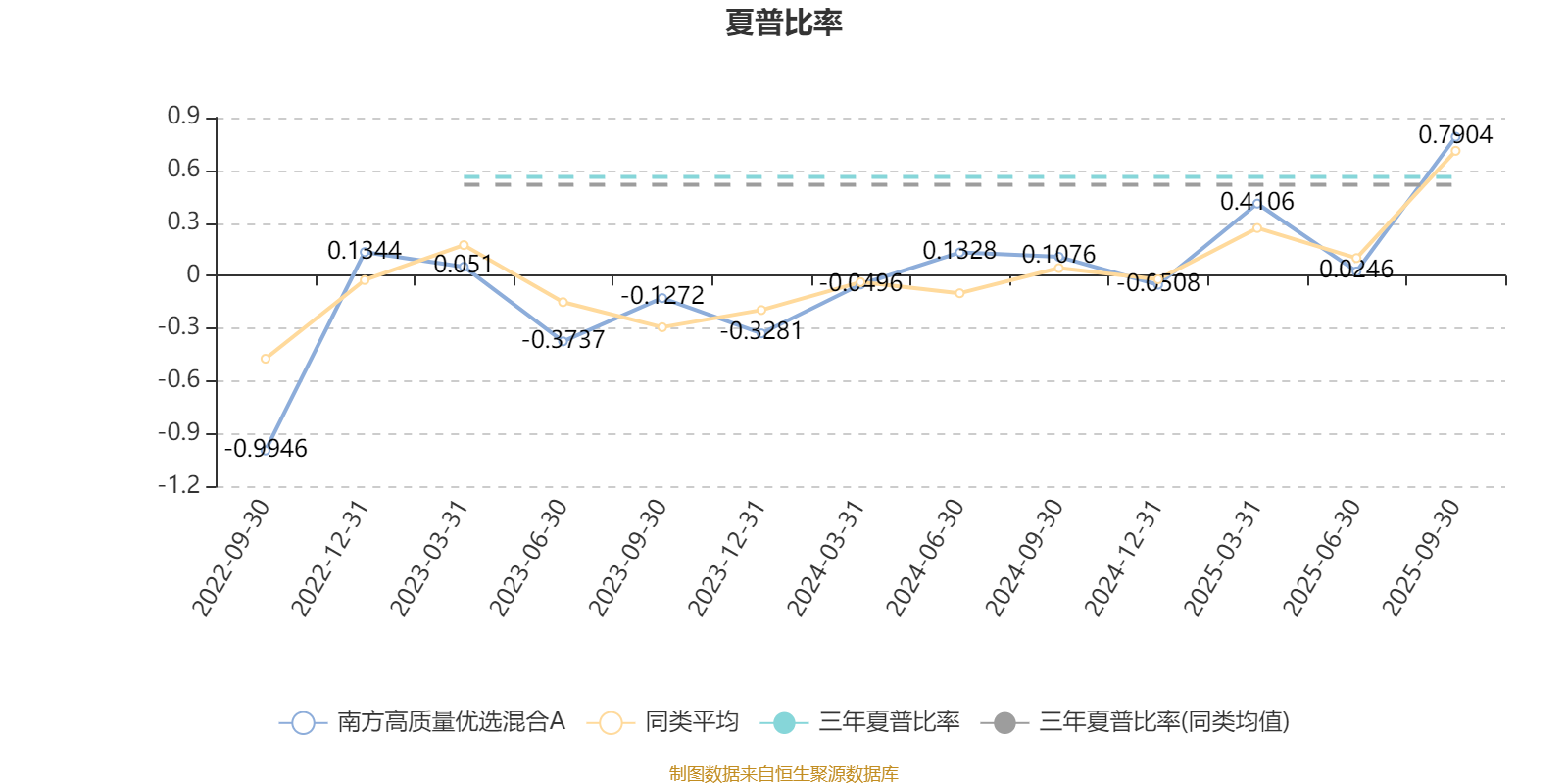 截至9月30日,基金近三年夏普比率为0.5628,位于同类可比基金227/518。