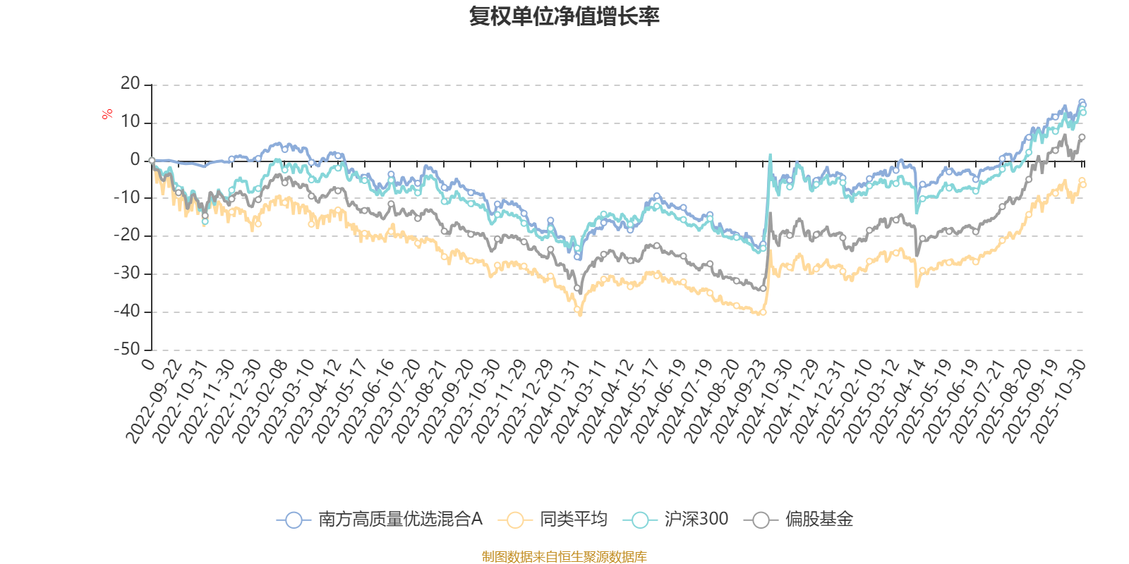 截至10月30日,南方高质量优选混合A近三个月复权单位净值增长率为12.89%,位于同类可比基金345/621;近半年复权单位净值增长率为21.76%,位于同类可比基金438/621;近一年复权单位净值增长率为20.98%,位于同类可比基金423/611;近三年复权单位净值增长率为16.58%,位于同类可比基金268/518。