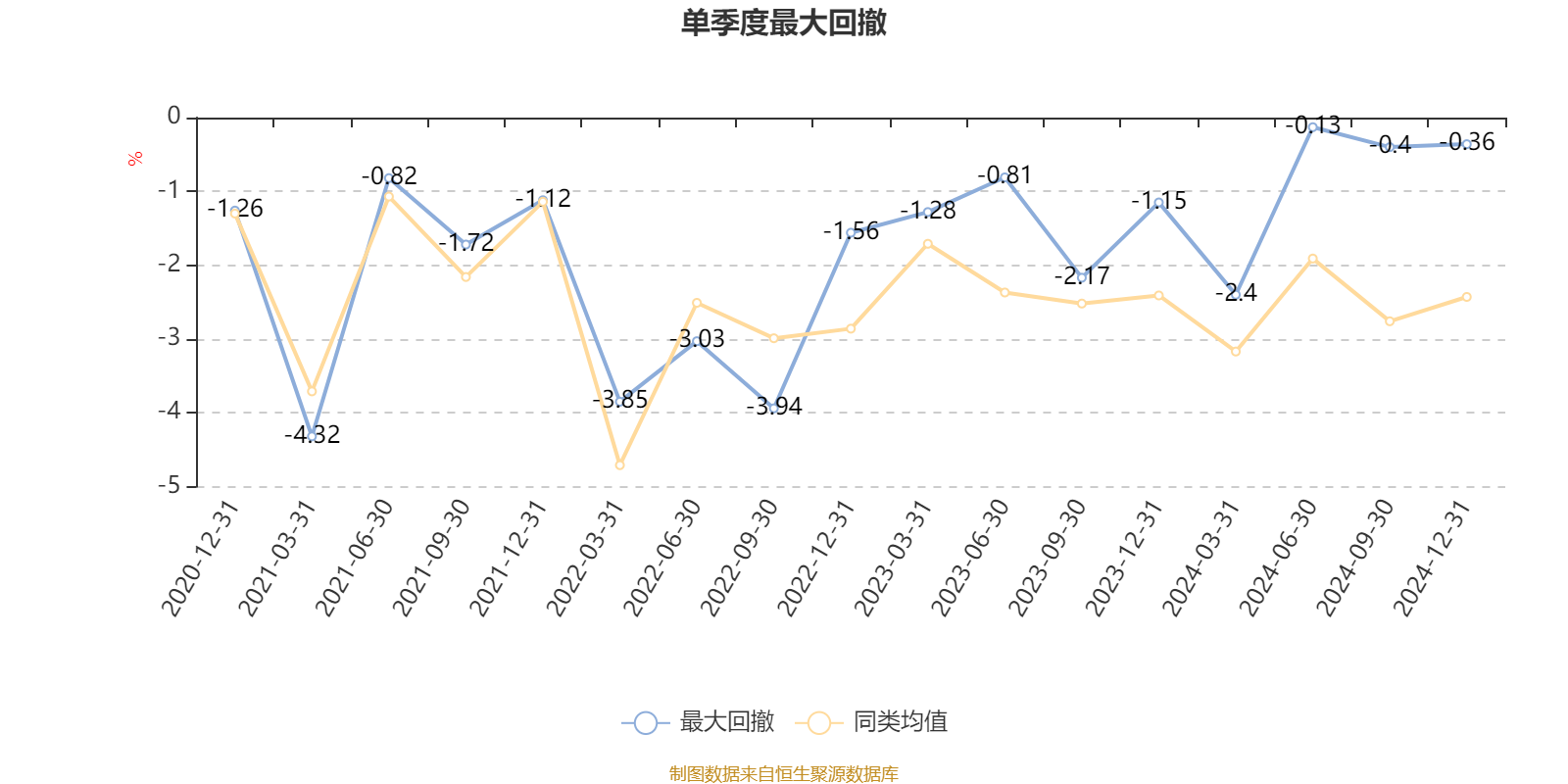 截至10月30日,基金近三年最大回撤为4.6%,同类可比基金排名164/556。单季度最大回撤出现在2021年一季度,为4.32%。