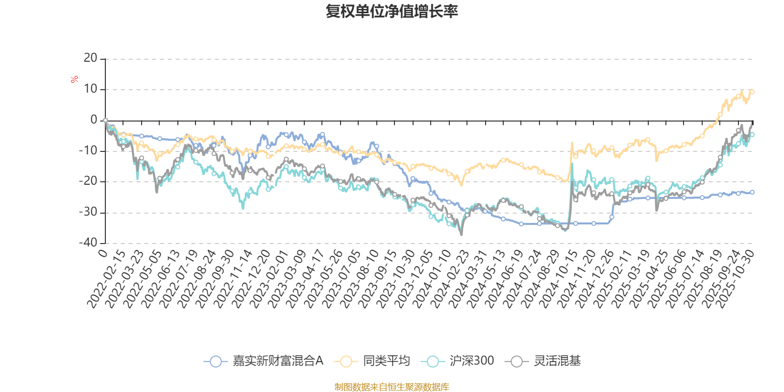 截至10月30日,嘉实新财富混合A近三个月复权单位净值增长率为1.34%,位于同类可比基金90/113;近半年复权单位净值增长率为2.50%,位于同类可比基金96/113;近一年复权单位净值增长率为15.25%,位于同类可比基金49/113;近三年复权单位净值增长率为-8.73%,位于同类可比基金101/113。