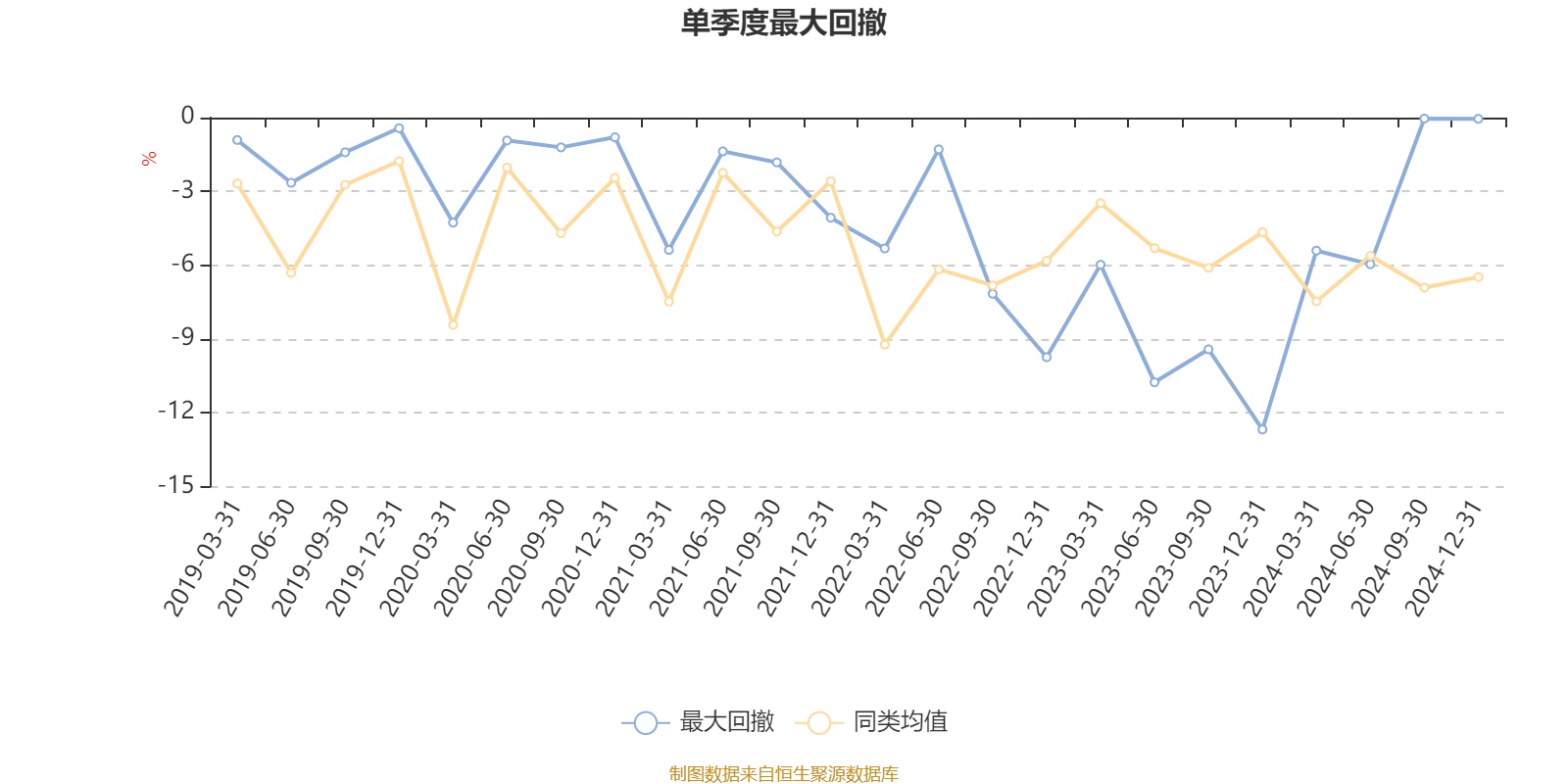 通过所选区间该基金净值增长率分位图,可以观察该基金与同类基金业绩比较情况。图为坐标原点到区间内某时点的净值增长率在同类基金中的分位数。