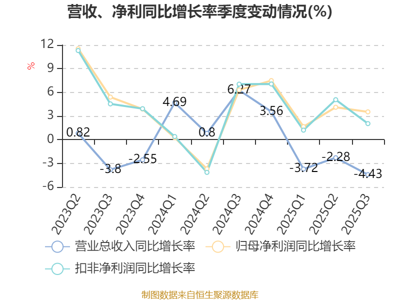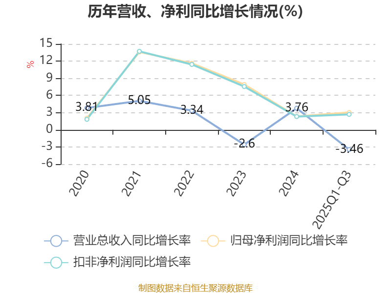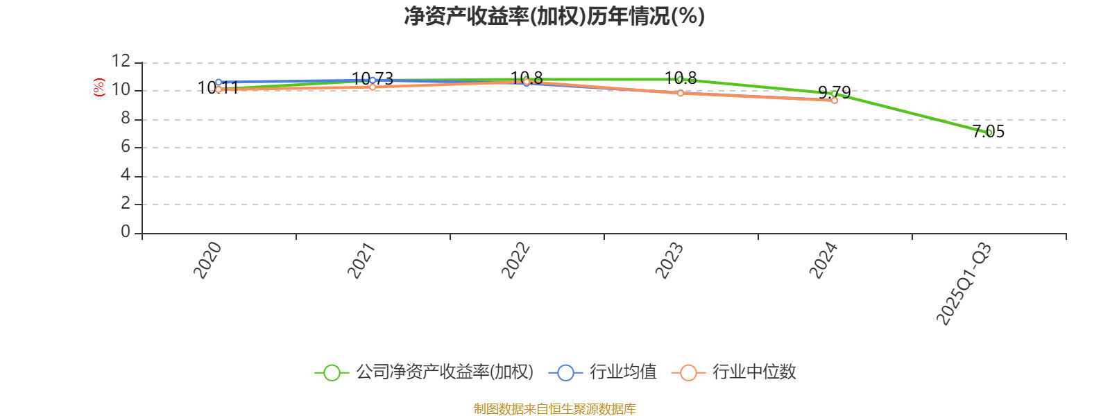 盈利能力方面, 2025年前三季度公司加权平均净资产收益率为7.05%,同比下降0.56个百分点。