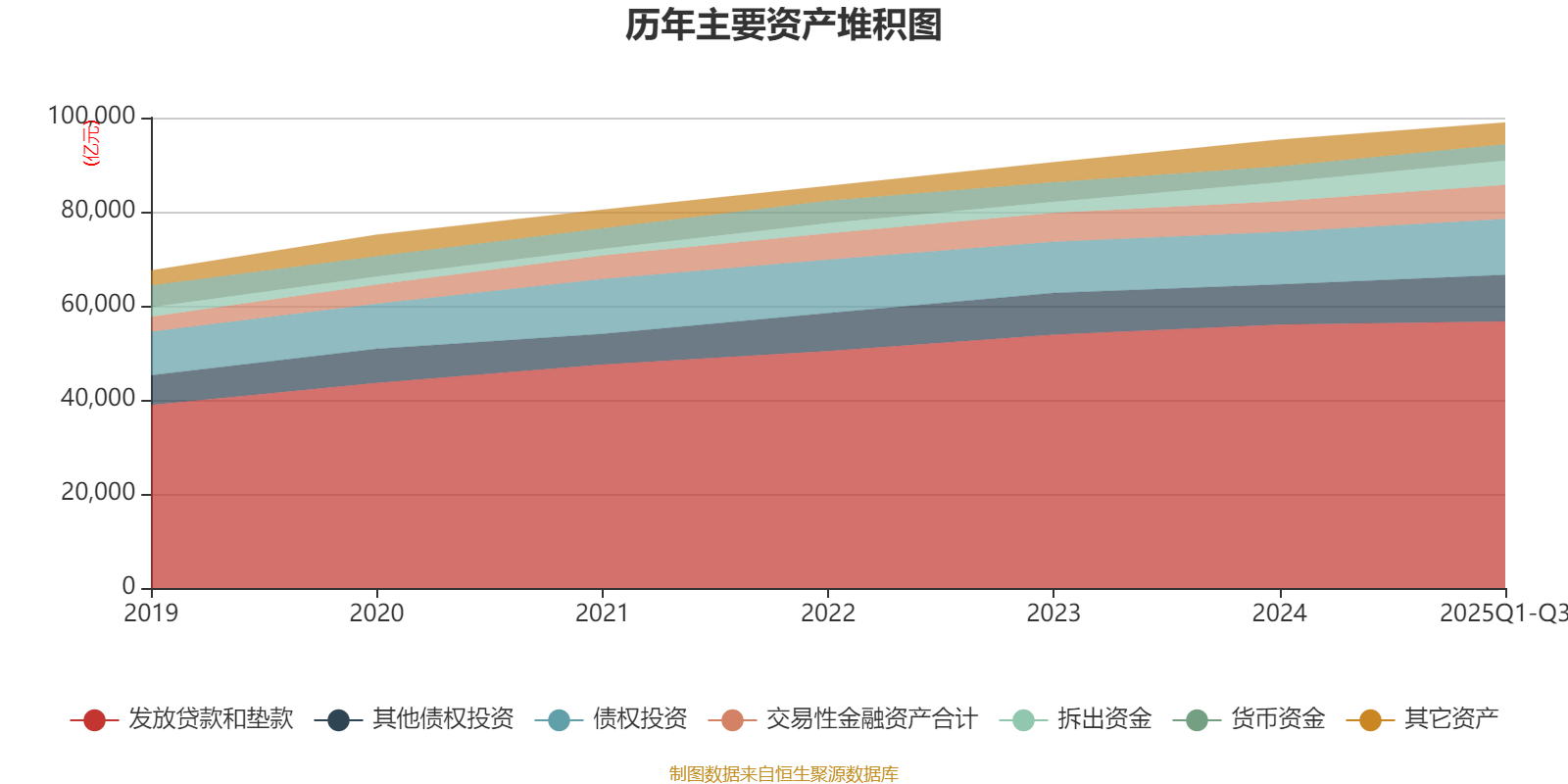 资产重大变化方面,截至2025年三季度末,公司发放贷款和垫款较上年末增加1.17%,占公司总资产比重下降1.51个百分点;其他债权投资较上年末增加16.39%,占公司总资产比重上升1.08个百分点;拆出资金较上年末增加27.45%,占公司总资产比重上升0.97个百分点;买入返售金融资产较上年末减少52.04%,占公司总资产比重下降0.77个百分点。