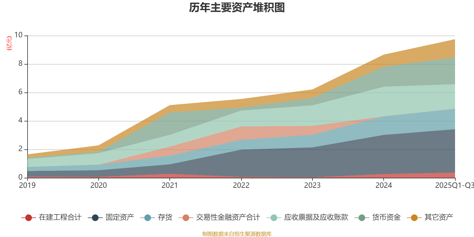 资产重大变化方面,截至2025年三季度末,公司应收票据及应收账款较上年末减少17.06%,占公司总资产比重下降6.34个百分点;货币资金较上年末增加33.96%,占公司总资产比重上升3.11个百分点;无形资产较上年末增加79.7%,占公司总资产比重上升1.56个百分点;应收款项融资较上年末增加332.93%,占公司总资产比重上升1.23个百分点。