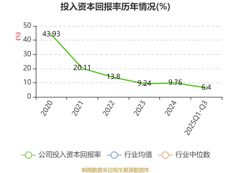 盈利能力方面, 2025年前三季度公司加权平均净资产收益率为9.02%,同比下降0.56个百分点。公司2025年前三季度投入资本回报率为6.4%,较上年同期下降1.19个百分点。