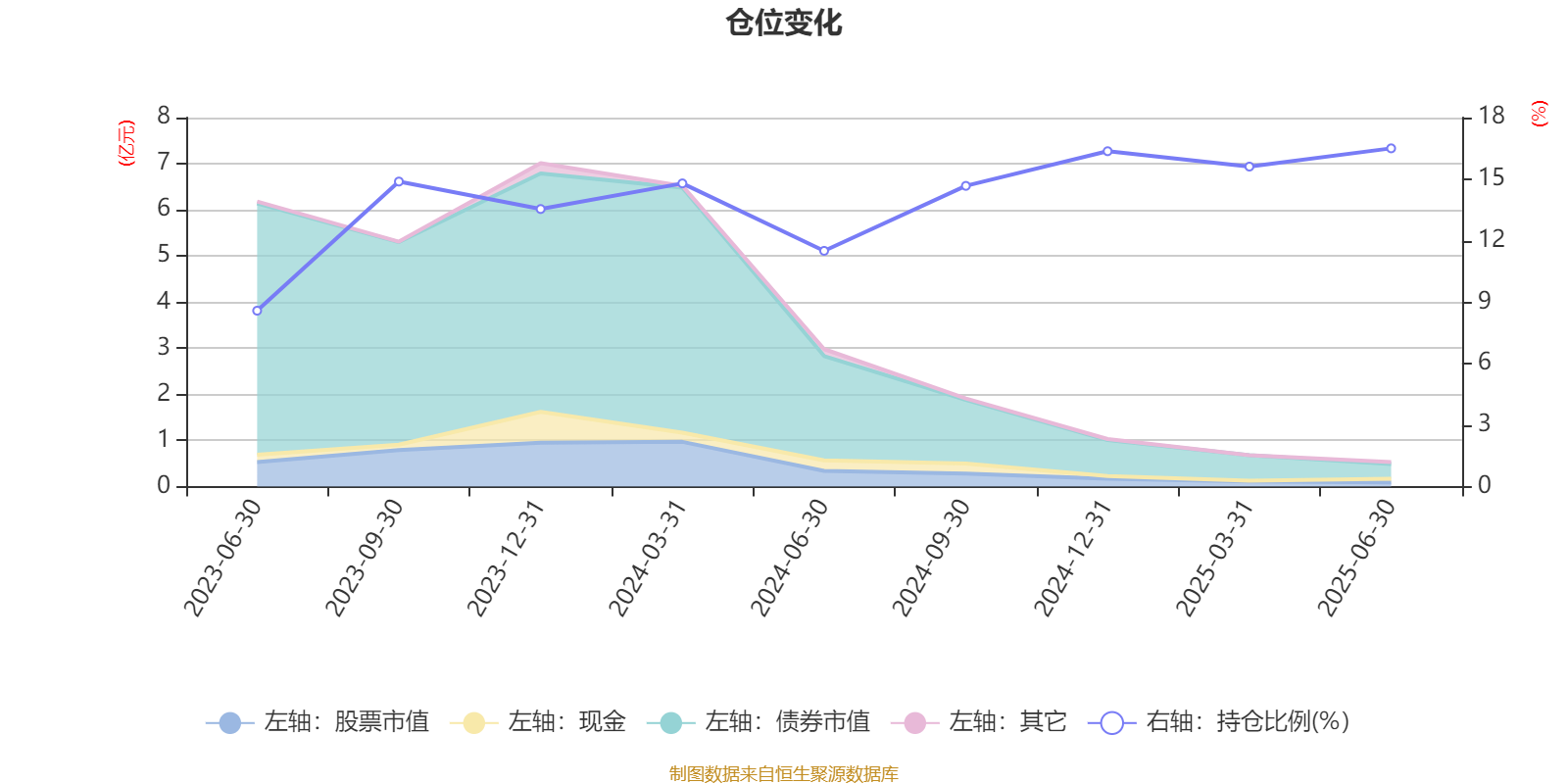 据定期报告数据统计,成立以来平均股票仓位为14.05%,同类平均为19.16%。2025年上半年末基金达到16.5%的最高仓位,2023年上半年末最低,为8.58%。