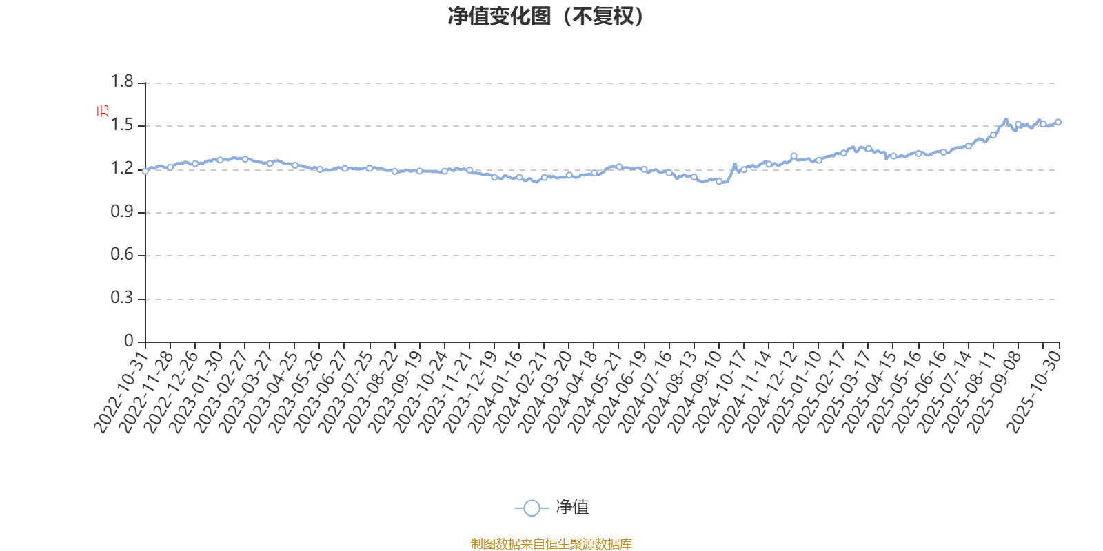 截至10月30日,基金近三年最大回撤为13.53%,同类可比基金排名499/562。单季度最大回撤出现在2024年三季度,为7.52%。
