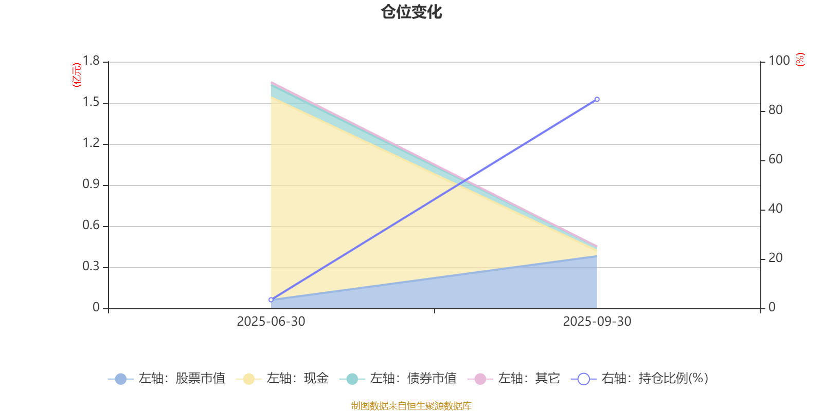 据定期报告数据统计,成立以来平均股票仓位为44.09%,同类平均为83.73%。2025年三季度末基金达到84.75%的最高仓位,2025年上半年末最低,为3.42%。